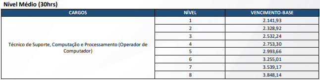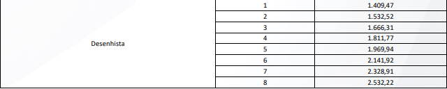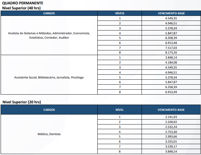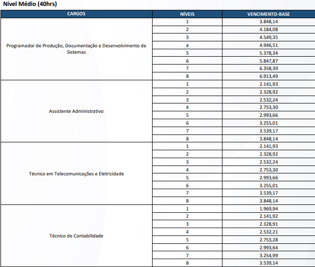 Confira, abaixo, a evolução remuneratória dos cargos: