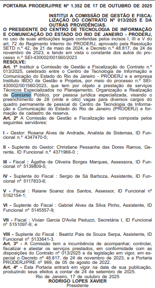 Um novo avanço foi registrado para a publicação do edital do concurso Proderj (Centro de Tecnologia de Informação e Comunicação do Estado do Rio de Janeiro): servidores foram designados para fiscalizar o contrato firmado com o Instituto IBDO, banca organizadora do certame.