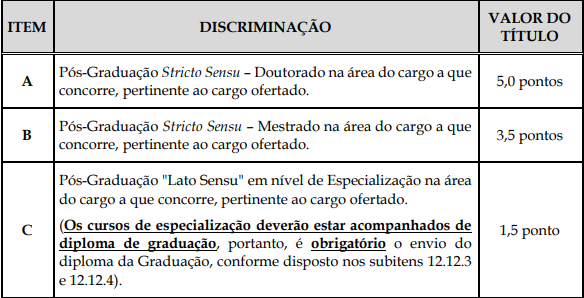 - 3ª Etapa: Prova de Títulos, de caráter classificatório, somente para nível superior.