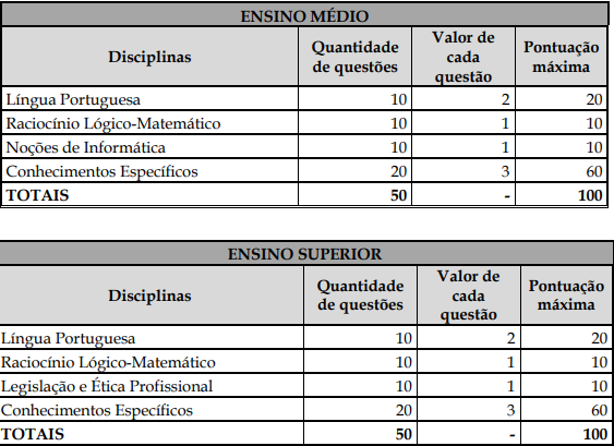 Confira, abaixo, a estrutura das provas: