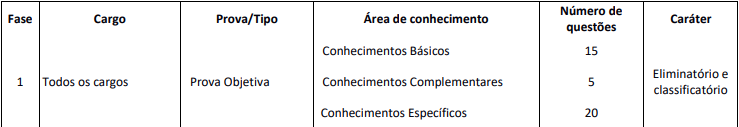 - Prova objetiva, de caráter eliminatório e classificatório, para todos os cargos; e