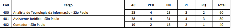 - Analista de Tecnologia da Informação: 1 vaga + 29 CR;