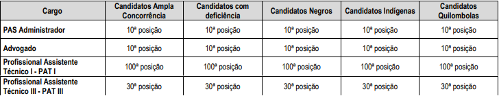 Somente serão corrigidas as provas discursivas dos candidatos aprovados na prova objetiva e que estejam classificados até as seguintes posições da lista de classificação nesta fase, por cargo: