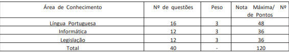 Confira, abaixo, a estrutura das provas: