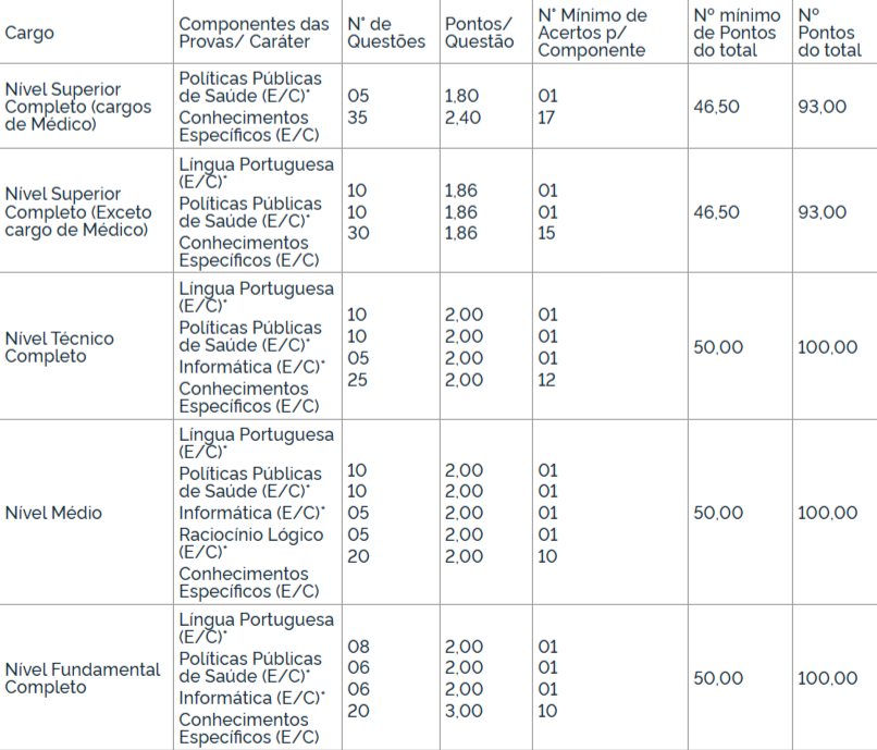 A Prova Teórico-Objetiva de cada cargo será eliminatória e classificatória e será composta por questões de múltipla escolha, com 5 (cinco) alternativas (A, B, C, D e E) e 1 (uma) única resposta correta.