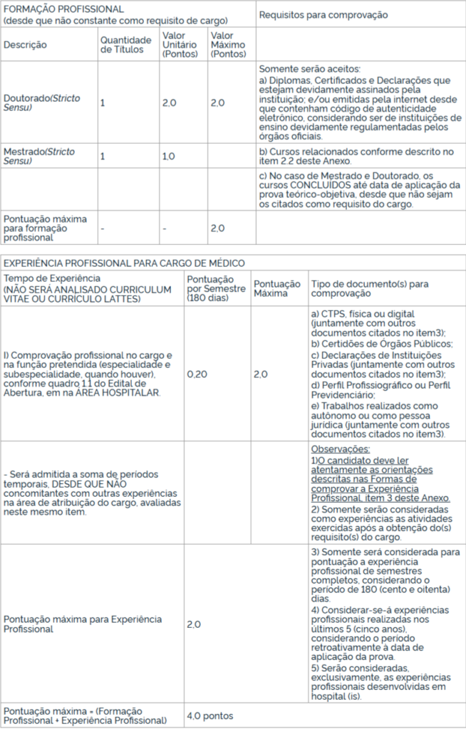 - Prova de Títulos para os candidatos aprovados na Prova Teórico-Objetiva para os cargos Médicos, de caráter classificatório.