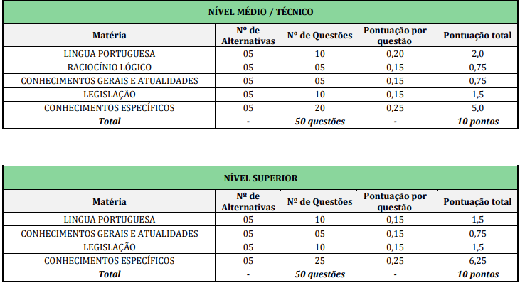 - Provas objetivas, de caráter classificatório e eliminatório;