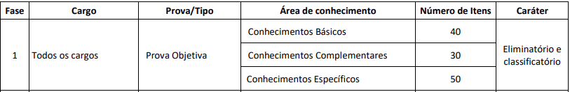 - Prova objetiva, de caráter eliminatório e classificatório, para todos os cargos; e