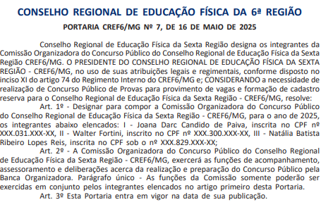 Um novo concurso público para o CREF MG (Conselho Regional de Educação Física da 6ª Região – Minas Gerais) pode ser realizado em breve!