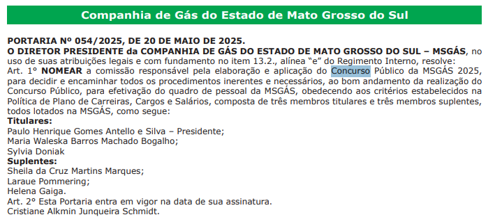 Um novo concurso público MSGás (Companhia de Gás do estado de Mato Grosso do Sul) pode ser realizado em breve!