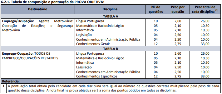 A prova objetiva será composta por questões de múltipla escolha, com até 04 alternativas, das quais apenas uma será correta. As questões serão elaboradas com base no programa de estudos.