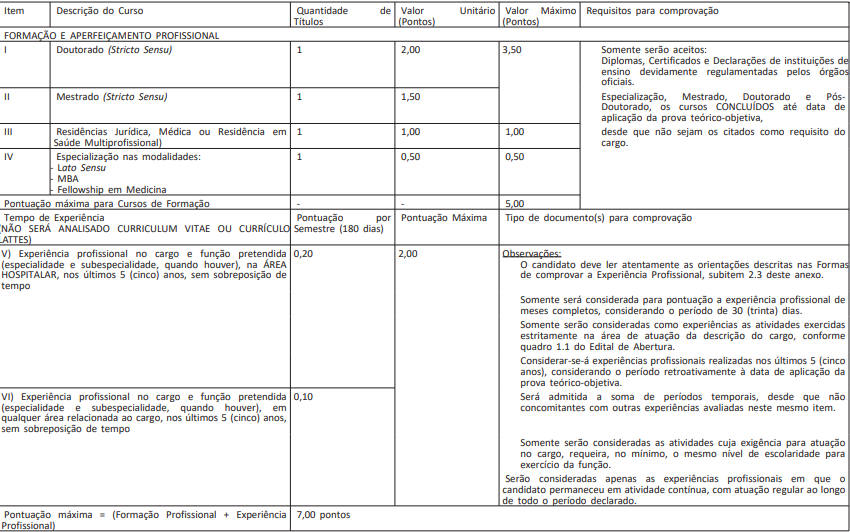 - Prova de Títulos, de caréter classificatório, para cargos de nível superior.