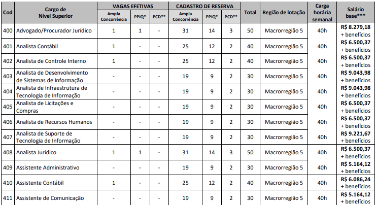 Confira detalhes sobre os cargos, vagas e salários: