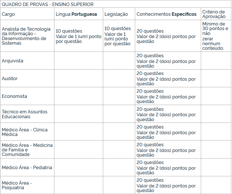 - Analista de Tecnologia da Informação – Desenvolvimento de Sistemas: 2 vagas