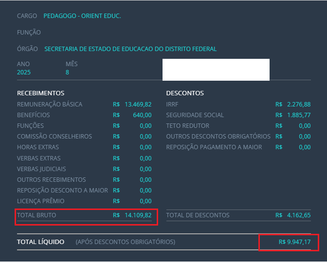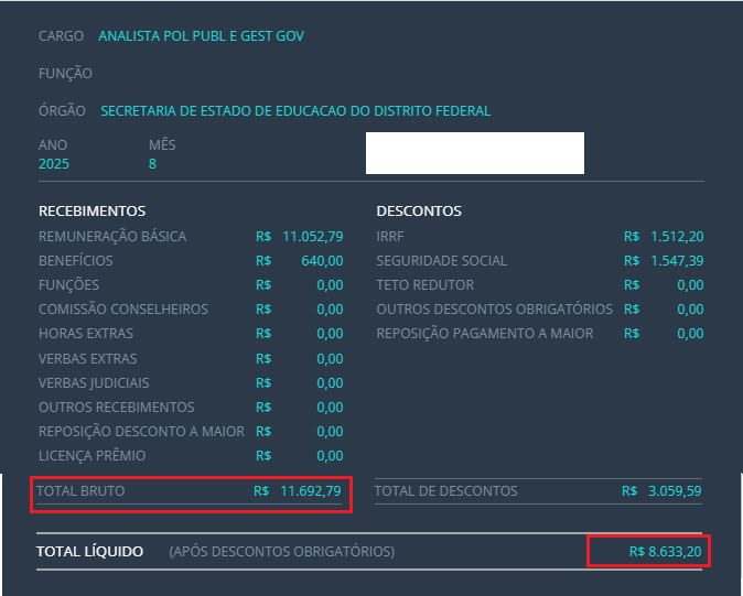 Salários do concurso SEDF