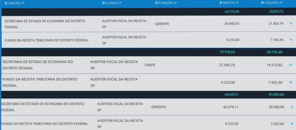 Dados recentes do Portal da Transparência do DF revelam remunerações que chegam a quase R$ 50 mil brutos mensais para auditores em cargos de chefia, refletindo progressões na carreira e gratificações.