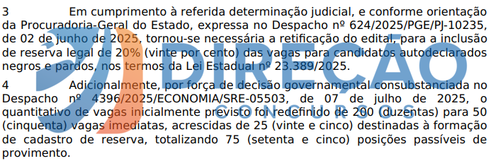 Vale lembrar que o edital de abertura foi publicado, em maio de 2025, contemplando 200 vagas imediatas e 100 oportunidades em cadastro reserva.