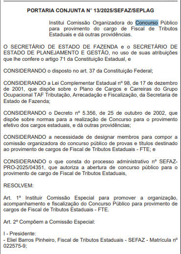- Cargo: Fiscal de Tributos Estaduais