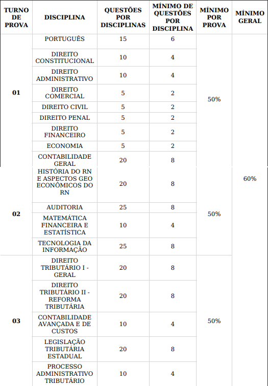 - Acertar o mínimo de 50% (cinquenta por cento) das questões, em cada bloco de provas (dia/turno);