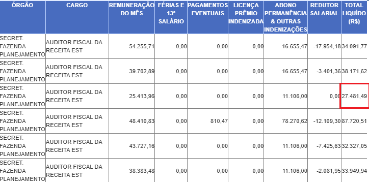 No entanto, uma análise dos dados oficiais revela uma realidade remuneratória muito mais atrativa do que os valores iniciais sugerem. Os ganhos líquidos dos servidores em atividade, obtidos através do portal da transparência do estado, mostram que a remuneração total pode chegar a valores significativamente superiores ao topo da tabela salarial base.