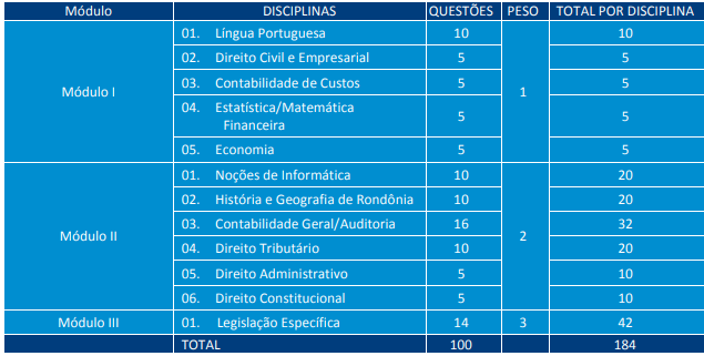 Já para os cargos de Técnico Tributário e Contador, as provas foram compostas por 80 questões. Veja: