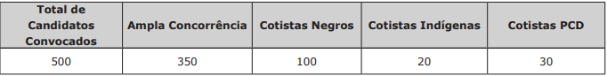 Serão convocados para prosseguirem para as demais fases do concurso, os candidatos aprovados na Prova Escrita Objetiva, classificados de acordo com o quantitativo a seguir: