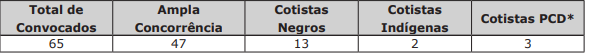 Confira, abaixo, a distribuição das vagas: