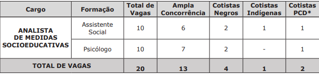 - Analista de Medidas Socioeducativas: 20 vagas