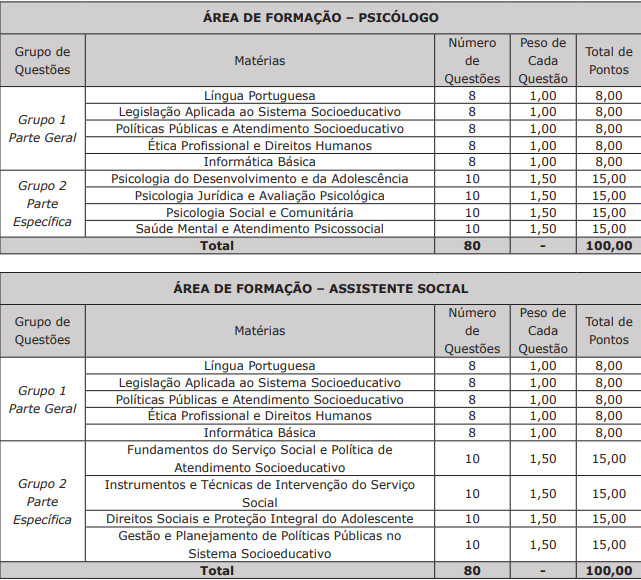- Cargos: Agente de Segurança Socioeducativa e Analista de Medidas Socioeducativas