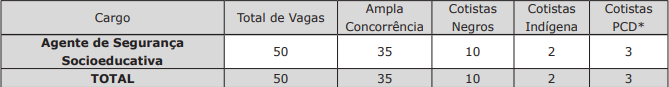 - Agente de Segurança Socioeducativa: 50 vagas