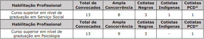 A convocação dos candidatos para a realização da matrícula no Curso de Formação Socioeducativa observará, rigorosamente, a ordem estabelecida na Classificação Preliminar e os seguintes quantitativos: