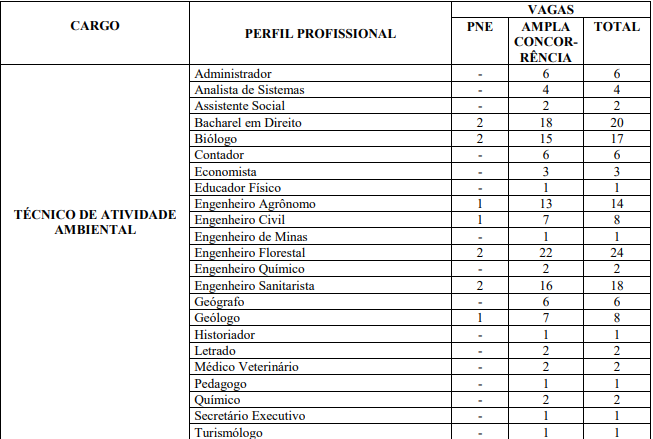 O certame foi autorizado pelo governo do estado no início de outubro. São previstas 150 vagas para o cargo de Analista de Meio Ambiente, que exige nível superior de formação de acordo com a especialidade e conta com um salário inicial de R$ 9.954,43.