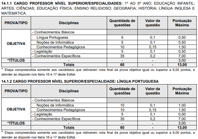 Os candidatos foram avaliados por meio de provas objetivas, compostas por 60 questões de múltipla escolha. Confira, abaixo, a estrutura das provas:
