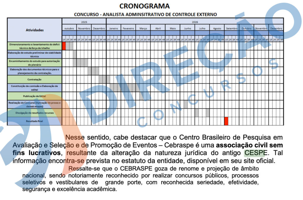 A menção direta, somada ao histórico recente do tribunal, coloca o Cebraspe como a banca mais provável para organizar o concurso, cuja contratação está prevista para dezembro de 2025.