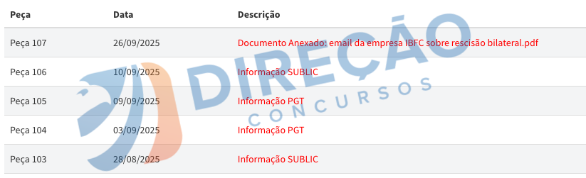 Os primeiros sinais de que a banca poderia ser trocada surgiram em junho de 2025, quando a comissão do concurso emitiu o primeiro relatório. O documento listava “diversas falhas e fragilidades” na minuta do edital preparada pela IBFC.