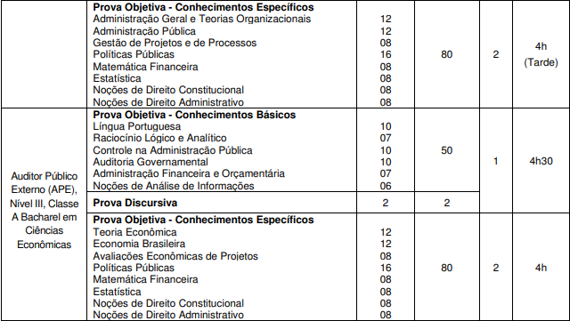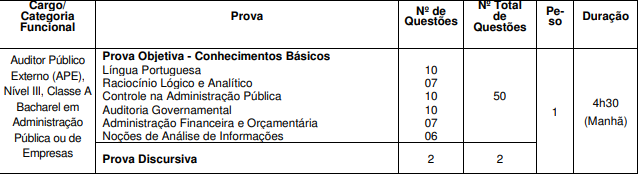 - Cargos: Auditor de Controle Externo e Oficial de Controle Externo