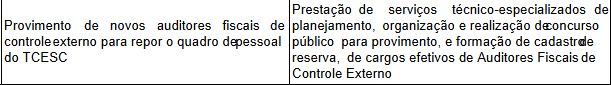 Apesar da boa notícia de indicativo de previsão de contratação da banca, ainda não informação de número de vagas e as habilitações exigidas. Confira, abaixo, a descrição da contratação da banca do concurso TCE SC: