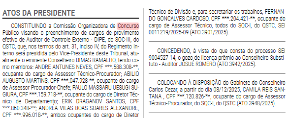 A comissão será presidida pelo vice-presidente do Tribunal, conselheiro Dimas Ramalho, e contará com a participação de servidores de diferentes áreas técnicas, além de um secretário designado para apoiar os trabalhos. A formação do grupo é uma etapa administrativa essencial para definição da banca organizadora e elaboração do edital, que deve definir regras, cronograma e detalhes das provas.