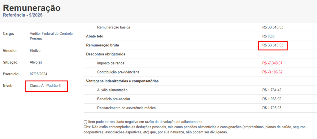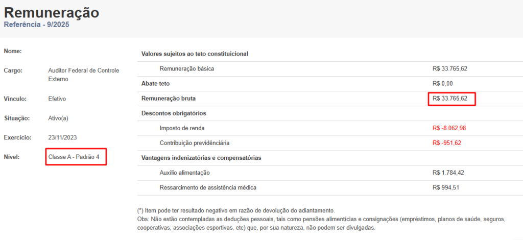 Consultas ao Portal da Transparência mostram os valores citados anteriormente na prática. Confira os detalhes com base em contracheques de servidores ativos: