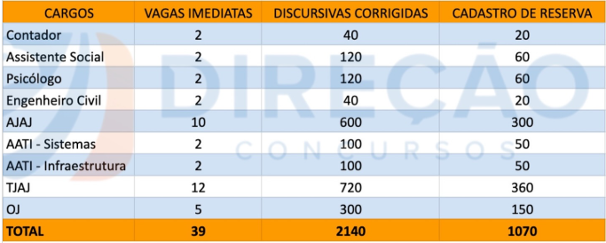A proposta de contratação da banca conta com 39 oportunidades imediatas para Técnicos e Analistas. A previsão é de 1.070 nomes em cadastro de reserva, além de 2.140 provas discursivas corrigidas.