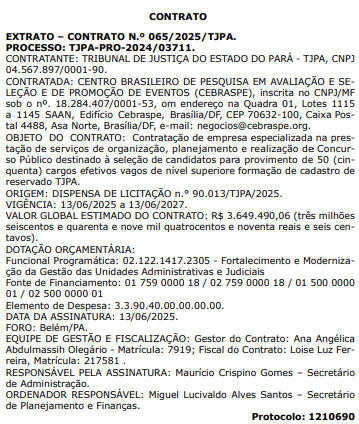 Isso porque foi publicado em Diário Oficial do estado nesta terça-feira (17/6), extrato de contrato que oficializa o Cebraspe como banca organizadora do certame.