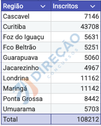 Confira, abaixo, o número de inscritos por região administrativa: