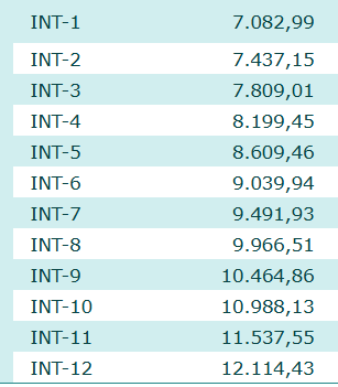 Ao final da carreira, no nível INT-12, o valor do vencimento básico poderá chegar a R$ 12.114,43. Somado ao auxílio-alimentação, os ganhos chegam a R$ 14.614,43, podendo ser reajustados ao longo dos anos.