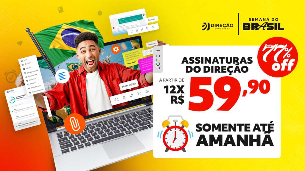 Aproveite até 77% de desconto nas assinaturas do Direção com a semana do Brasil, e inicie a sua jornada rumo à aprovação.