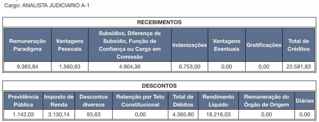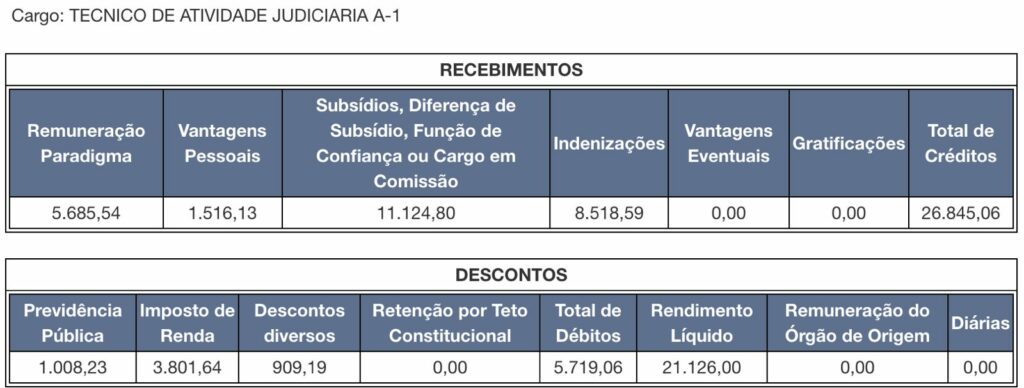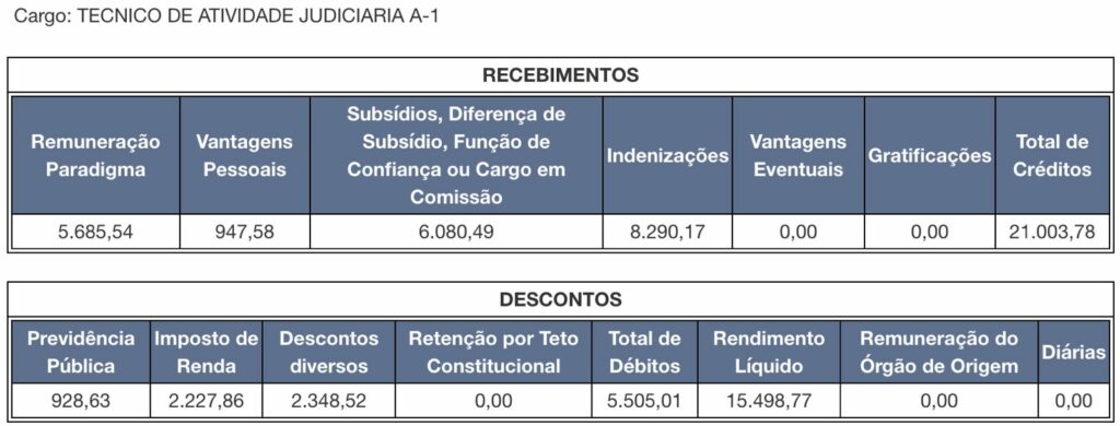 Os valores incluem salário base, gratificações, adicionais e eventuais, mas variam conforme tempo de serviço, progressões e especialidades. Os contracheques são públicos e podem ser consultados diretamente no site do tribunal para mais detalhes.