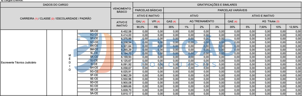 Confira a escala remuneratória, a seguir: