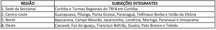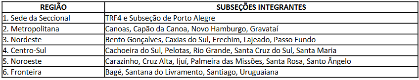 Em relação à lotação dos aprovados, confira quais são as Regiões da Justiça Federal da 4ª Região indicadas no certame: