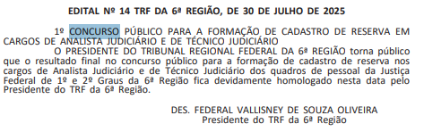 Panorama do concurso TRF6