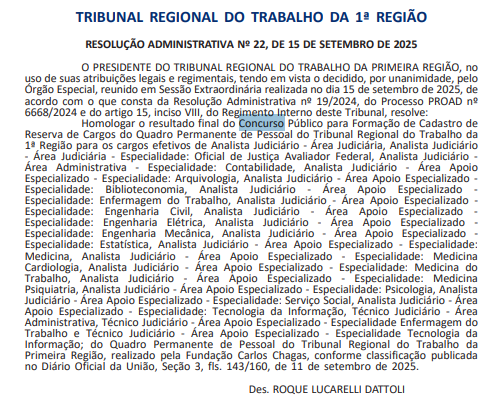 O Tribunal Regional do Trabalho da 1ª Região/Rio de Janeiro (TRT RJ) homologou, neste mês de setembro, o resultado final do seu concurso público.