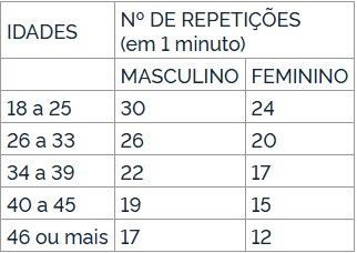 - TESTE ABDOMINAL (masculino e feminino) – Tempo: em 1 minuto;